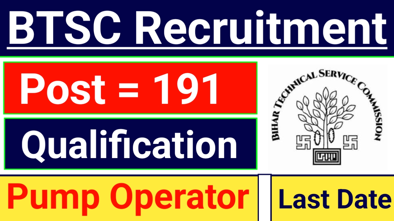 BTSC Pump Operators Recruitment 2025 [ 191 Post ] | BTSC में पंप ऑपरेटर के लिए 191 पद पर भर्ती आ गई जल्दी करें आवेदन